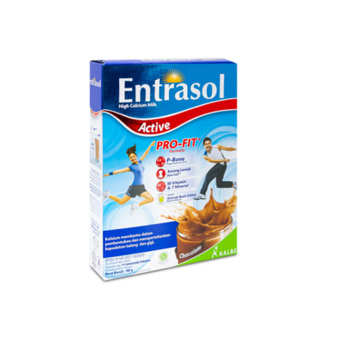 Selain itu, Entrasol Active Chocolate juga mengandung serat, omega omega 3 dan 6, serta 10 vitamin dan 5 mineral yang dapat membantu memenuhi kebutuhan nutrisi harian agar tetap aktif dan produktif.