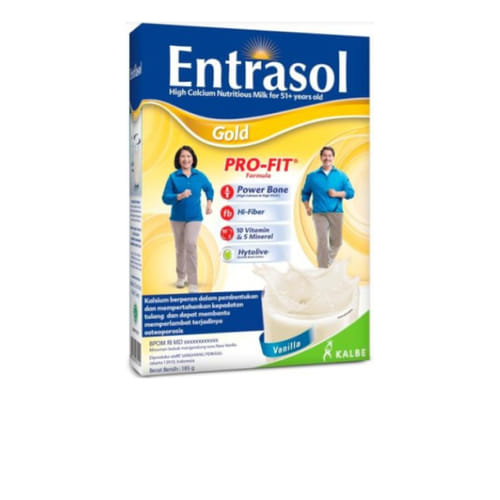 Entrasol Gold Vanila adalah susu bubuk berkalsium tinggi yang diformulasikan khusus untuk orang lanjut usia (lansia) agar tetap sehat dan aktif.