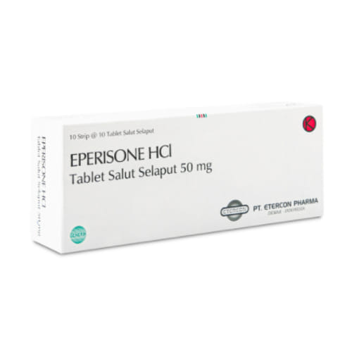 Eperisone Tablet Salut Selaput 50 Mg bermanfaat untuk meredakan rasa sakit, kaku, dan tegang pada otot.