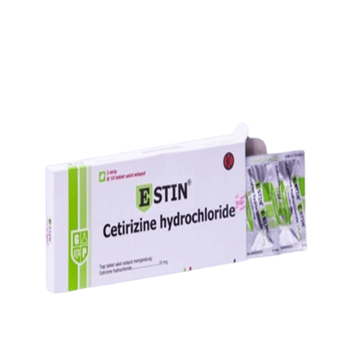 Estin 10 Mg 10 Tablet mengandung bahan aktif cetirizine. Obat ini bekerja dengan memblokir histamin, yaitu senyawa yang menyebabkan terjadinya gejala dan reaksi alergi saat tubuh terpapar alergen (zat pemicu alergi).