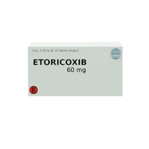 Etoricoxib 60 mg diproduksi oleh PT. Novell Pharmaceutical Laboratories. Obat ini memiliki kandungan bahan aktif Etoricoxib yang digunakan untuk mengatasi nyeri dan pembengkakan akibat rheumatoid arthritis, gout arthritis serta ketika pasien juga mengalami peradangan, dan mengurangi gangguan inflamasi (peradangan) secara umum. Etoricoxib termasuk dalam golongan Nonsteroidal Anti-Inflammatory Drug (NSAID) yang memiliki mekanisme kerja dalam mengatasi nyeri sebagai berikut : • Menghambat kerja dari enzim siklooksigenasi (COX) dimana enzim ini berfungsi dalam membantu pembentukan prostaglandin saat terjadinya luka dan menyebabkan rasa sakit serta peradangan. Ketika kerja enzim COX terhalangi, maka produksi prostaglandin lebih sedikit, sehingga rasa sakit dan peradangan akan berkurang. ETORICOXIB NOVELL 60MG TAB 30S dapat dikonsumsi bersama atau tanpa makan. Konsultasikan terlebih dahulu kepada dokter apabila akan digunakan pada pasien dengan riwayat atau kondisi sakit seperti: • Riwayat alergi terhadap kandungan obat ini. • Penyakit ginjal stadium lanjut. • Pasien dehidrasi, edema. • Pasien hipertensi (tekanan darah tinggi) atau gagal jantung. • Riwayat penyakit kardiovaskular atau trombotik lain. • Pasien dengan riwayat penyakit asma akut. Interaksi dapat terjadi apabila digunakan bersamaan dengan obat-obatan seperti: • Warfarin • Rifampin • Metotreksat • ACE Inhibitor • Aspirin • Kontrasepsi oral