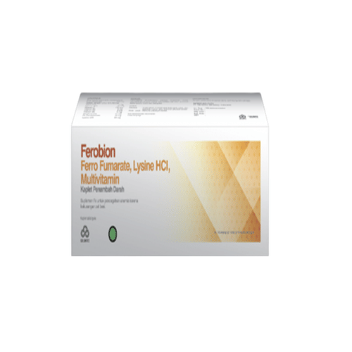 Tiap kaplet mengandung ferrous fumarate 250 mg, folic acid 1 mg, vitamin B12 10 mcg, vitamin C 150 mg, vitamin B1 3 mg, vitamin B6 5 mg, nicotinamide 30 mg, calcium panthotenat 15 mg, lysin HCl 50 mg, sorbitol 30 mg