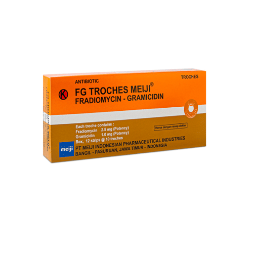 - FG Troches Tablet mengandung antibiotik aminoglikosida. Beri tahu dokter jika Anda pernah atau sedang menderita penyakit ginjal, gangguan pendengaran, gangguan keseimbangan, myasthenia gravis, atau multiple sclerosis.