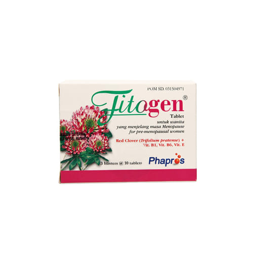 Tiap tablet mengandung red clover extract 100 mg, vitamin B1 10 mg, vitamin B6 10 mg, vitamin E 15 mg.