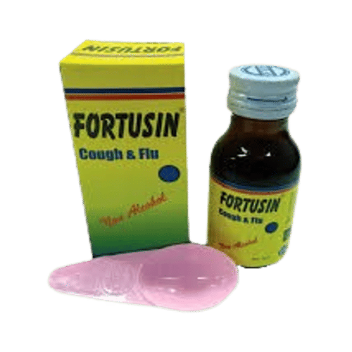 Fortusin Sirup mengandung bahan aktif Diphenhydramine HCl 5 mg, Bromhexine HCl 4 mg, Phenylephrine HCl 5 mg, Sodium Citrate 25 mg, Ammonium Chloride 62,5 mg, dan Succus Liquiritiae 180 mg. Kombinasi bahan aktif ini bekerja sebagai terapi untuk meredakan batuk alergi, batuk berdahak (produktif), serta batuk yang berhubungan dengan flu atau gangguan pernapasan lainnya.