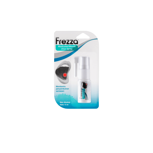 Frezza Medicated Mouth Ulcer Spray 13 Ml digunakan untuk membentuk lapisan pelindung pada permukaan mukosa mulut dan melembapkan jaringan yang luka sehingga dapat mengurangi nyeri, membantu penyembuhan sariawan atau luka akibat trauma yang disebabkan oleh kawat gigi, radang gusi dan membantu regenerasi jaringan lunak.