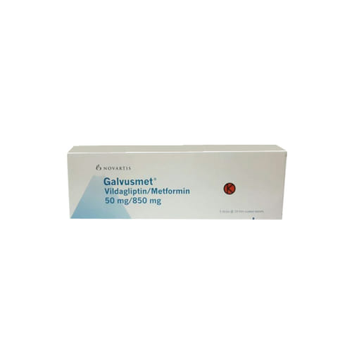 Galvusmet 50 mg/850 mg mengandung kombinasi metformin dan vildagliptin. Obat ini akan menurunkan kadar gula darah dengan cara meningkatkan kerja hormon insulin dan menurunkan penyerapan gula di dalam usus.
