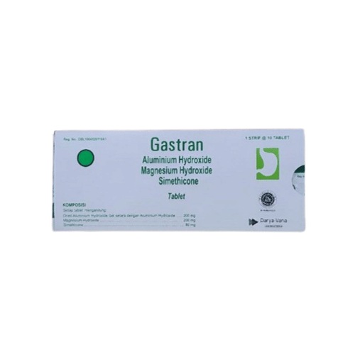 Gastran 10 Tablet mengandung aluminium hidroksida, magnesium hidroksida, dan simethicone. Obat ini bekerja dengan cara menetralkan asam lambung sehingga rasa nyeri di ulu hati (sakit maag) akibat iritasi asam lambung berkurang.