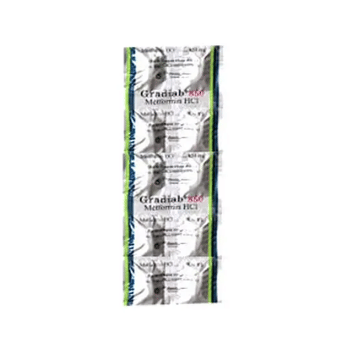 Gradiab 500 Mg 10 Tablet mengandung metformin yang bekerja dengan cara meningkatkan kerja dan aktivitas hormon insulin, menurunkan pembentukan gula darah di dalam hati, dan menurunkan penyerapan gula di dalam usus. Cara kerja ini akan membantu menurunkan kadar gula di dalam darah.