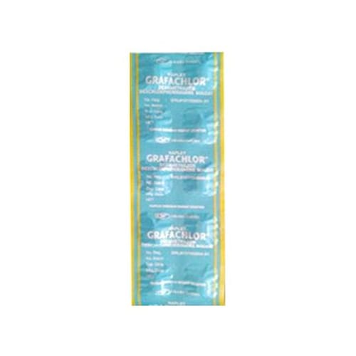 Grafachlor diproduksi oleh PT. Graha Farma dan telah terdaftar di BPOM. Setiap tablet Grafachlor mengandung dexamethasone dan dexchlorpheniramine maleat. Kandungan dexamethasone pada Grafachlor merupakan glukokortikoid yang dapat mengatasi alergi dan inflamasi sedangkan kandungan dexchlorpheniramine maleat merupakan antihistamin yang bertugas membendung histamin sehingga kombinasi dari keduanya dapat digunakan untuk pengobatan sistomatik pada kasus alergi dan inflamasi yang membutuhkan terapi kortikosteroid.