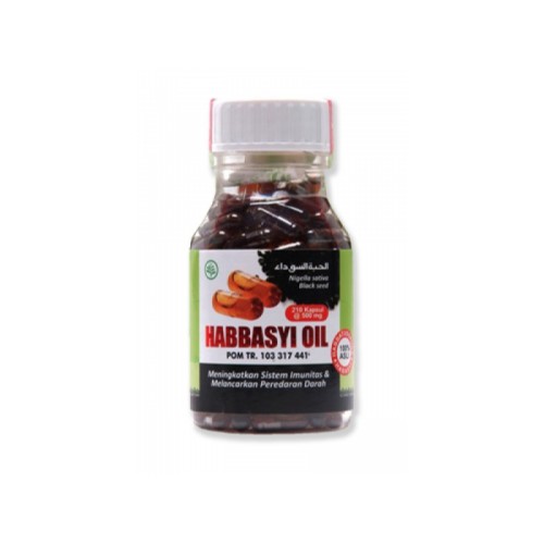 Habbasyi Oil 210 Kapsul 500 Mg terbuat dari minyak habbasyi atau yang dikenal juga dengan nama habbatussauda, black seed, nigella sativa, kalonji, atau biji jintan hitam.