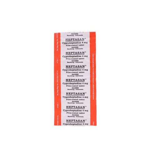 Heptasan 4 Mg bermanfaat untuk meredakan gejala alergi pada rhinitis atau urtikaria.