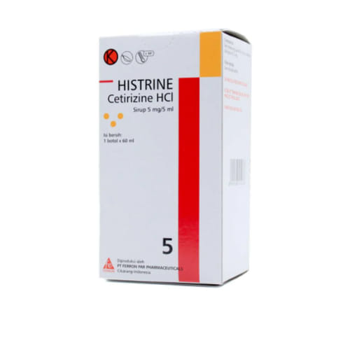 Histrine 5 mg/5 ml Sirup mengandung bahan aktif cetirizine dihydrochloride yang bekerja dengan cara menghambat kerja dan pelepasan histamin. Histamin merupakan zat kimia yang menyebabkan munculnya reaksi alergi saat tubuh terpapar zat pemicu alergi (alergen).