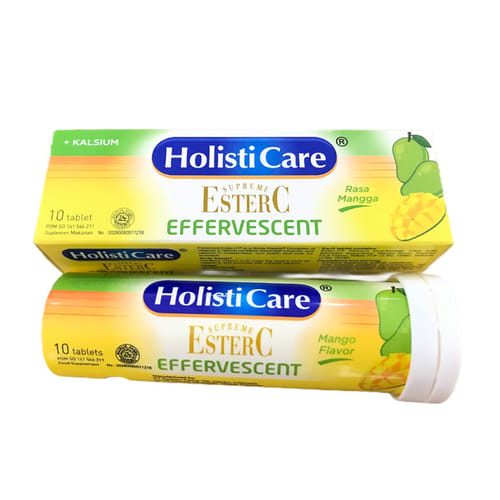 1 tablet mengandung ester C 320 mg, kalsium askorbat 32 mg, citrus bioflavonoid 100 mg, natrium bikarbonat, asam sitrat, mannitol, pemanis buatan aspartam, perasa blackcurrant, pewarna biru brilliant cl no. 42090, pewarna ponceau 4 r cl no. 16255
