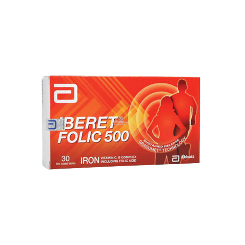 Iberet Folic 500 bermanfaat untuk mengobati anemia defisiensi besi. Suplemen yang mengandung zat besi juga dapat digunakan untuk mencegah dan mengobati defisiensi zat besi pada wanita hamil.