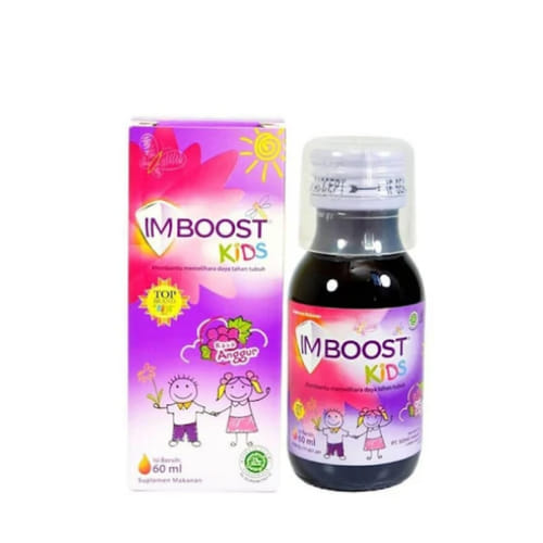 Imboost Kids Sirup Rasa Anggur 60 Ml bermanfaat untuk memelihara daya tahan tubuh anak dan mempercepat proses penyembuhan.