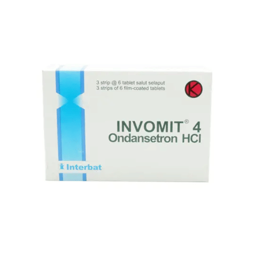 Invomit Tablet mengandung ondansetron. Obat ini bekerja dengan cara menghambat ikatan serotonin pada reseptor 5HT3, sehingga membuat penggunanya tidak mual dan berhenti muntah.