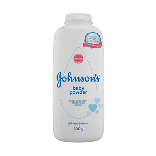 Johnson’s Baby Powder mengandung talc yang membantu menyerap kelembaban berlebih. Bedak ini hanya boleh digunakan di permukaan kulit saja