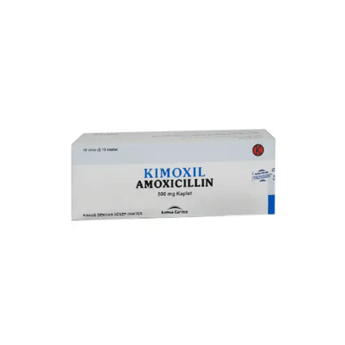KIMOXIL 500MG KAPSUL, mengandung zat aktif amoxicillin yang merupakan antibiotik golongan penicillin, mempunyai spektrum sedang, aktif terhadap bakteri gram negatif maupun gram positif. KIMOXIL 500MG KAPSUL, digunakan untuk mengobati infeksi saluran pernafasan bagian atas dan bawah, infeksi saluran kemih, infeksi saluran pencernaan, serta infeksi kulit dan jaringan lunak.