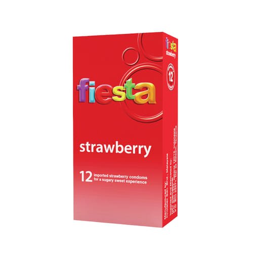 Kondom Fiesta Strawberry Isi 12 merupakan alat kontrasepsi dengan rasa strawberry untuk menambah gairah percintaan