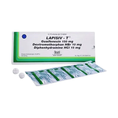 Setiap tablet mengandung Guaifenesin 150 mg, Dextromethorphan HBr 10 mg, dan Diphenhydramine HCl 15 mg.