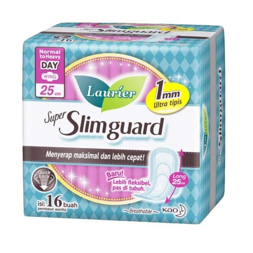 Laurier Super Slim Guard menyerap lebih cepat, sangat tipis, dan fleksibel atau mengikuti bentuk tubuh, sehingga nyaman untuk dipakai. Pembalut kewanitaan ini juga dilengkapi dengan sayap pelindung, sehingga cocok dipakai saat cairan menstruasi banyak.