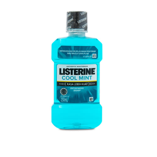 Listerine Cool Mint Mouthwash merupakan obat kumur antiseptic yang dapat mengurangi 99,9% kuman penyebab plak dan bau mulut, menjaga gusi tetap sehat, serta bisa memberikan kesegeran pada napas selama 12 jam setelah menyikat gigi.