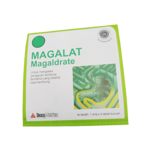 Tiap tablet kunyah mengandung magaldrate 480 mg, simethicone 20 mg