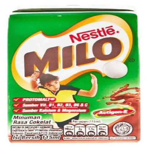 Milo Actigen E 115 Ml merupakan minuman coklat yang lezat dengan kombinasi unik coklat, protomalt, vitamin dan mineral yang dapat membantu memenuhi kecukupan energi dan nutrisi pada anak. Rasa coklat yang kaya protomalt merupakan zat karbohidrat kompleks sebagai sumber energi. Semenatra, zat gizi mikronya dari vitamin dan mineral yang berperan penting dalam pelepasan energi dan pemeliharaan tulang untuk mendukung pertumbuhan serta aktivitas fisik anak. Jadi, Milo adalah pilihan terbaik untuk anak dengan rasa yang lezat dan mengandung nutrisi yaitu protomalt dan actigen-E.