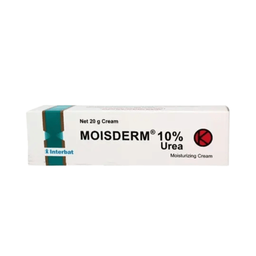 Moisderm 10% Krim mengandung zat aktif urea yang bekerja dengan cara menghancurkan zat keratin di lapisan luar kulit. Efek ini akan mengurangi penumpukan sel-sel kulit mati dan akan membantu kulit menyimpan lebih banyak air, sehingga kulit akan terasa lembap.