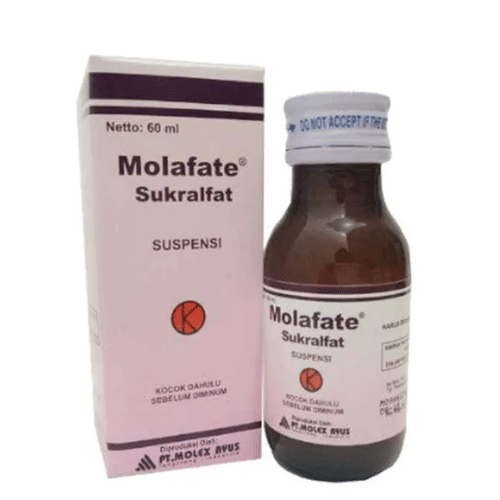 Molafate Suspensi 60 ml bermanfaat untuk mengatasi tukak lambung, ulkus duodenum, atau gastritis kronis.