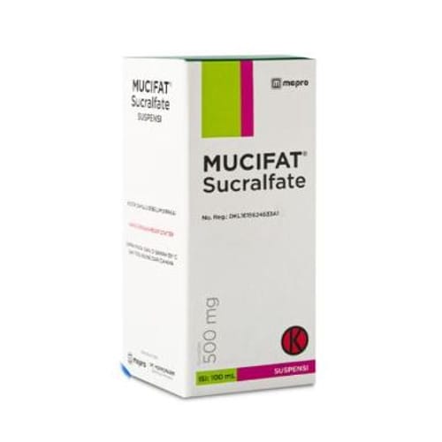 Mucifat Suspensi 100 Ml bekerja dengan cara menempel di bagian lambung atau usus yang luka dan melindunginya dari asam lambung, enzim pencernaan, dan garam empedu, sehingga membantu penyembuhan ulkus.
