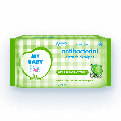 My Baby Antibacterial Wipes 50 Sheets bermanfaat untuk membersihkan area mulut, tangan, dan kulit bayi secara keseluruhan. Tissue basah tanpa alkohol dan parfum ini bersetifikasi food grade dan sudah teruji klinis 99,9% efektif membunuh kuman
