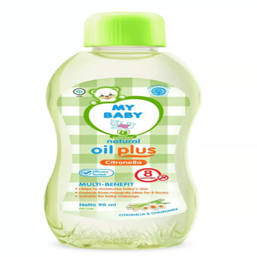 My Baby Oil Plus Citronella 90 Ml dengan multi-benefit, yaitu membantu melembutkan kulit bayi, melindungi bayi dari gigitan nyamuk selama 8 Jam, dan cocok digunakan untuk pijat bayi. Formula lembut dan terbuat dari perpaduan bahan-bahan alami Citronella Oil dan Chamomile dengan wangi yang lembut.