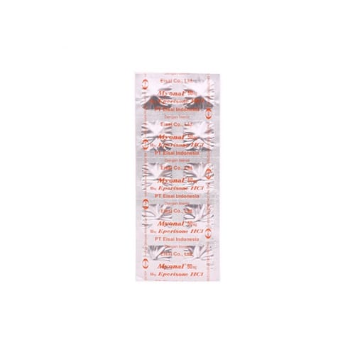 Ikuti anjuran dokter dan baca informasi yang tertera pada kemasan obat sebelum mengonsumsi Myonal 50 Mg 10 Tablet. Jangan menambahkan atau mengurangi dosis tanpa berkonsultasi dulu dengan dokter.