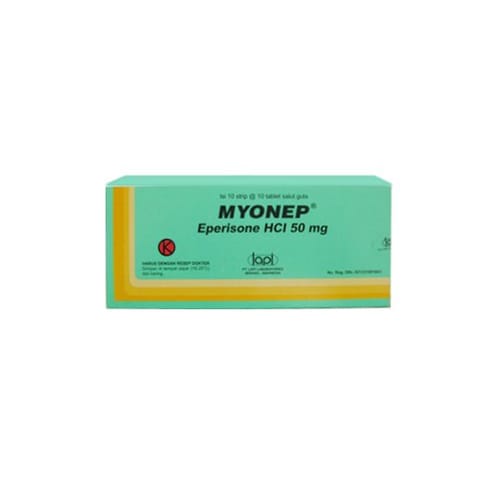 Myonep merupakan obat yang digunakan untuk merelaksasi otot pada kondisi kejang otot atau spasme muskuloskeletal. Myonep mengandung zat aktif Eperisone HCl yaitu obat antispasmodik yang bekerja dengan melemaskan otot rangka dan otot polos pembuluh darah sehingga menyebabkan vasodilatasi atau pelebaran pembuluh darah dan mengurangi rasa sakit pada otot.