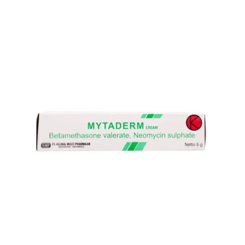 - Pemakaian Mytaderm Krim jangka panjang dan berlebihan bisa meningkatkan risiko gangguan kelenjar adrenal, terutama pada anak-anak.