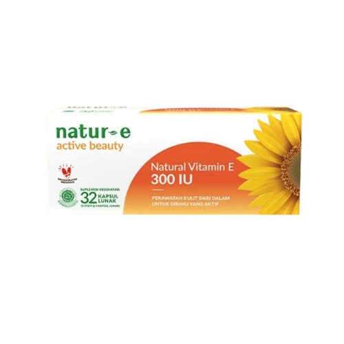 Natur E Active Beauty Natural Vitamin E 300 IU bermanfaat untuk merawat kesehatan kulit. Suplemen ini mengandung vitamin E yang berasal dari bahan alami, seperti minyak biji gandum dan minyak biji bunga matahari.
