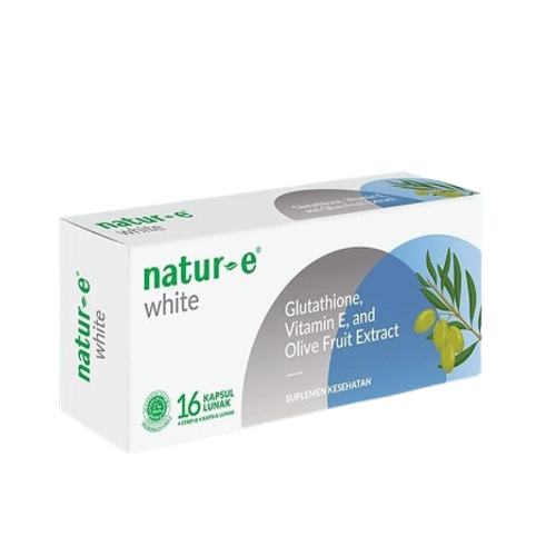 Natur-E White mengandung vitamin E 20 UI, L-glutathione 50 mg, dan olive fruit extract 50 mg. Produk ini bermanfaat untuk mencegah kerusakan sel akibat radikal bebas, serta membantu melembapkan dan mencerahkan kulit.