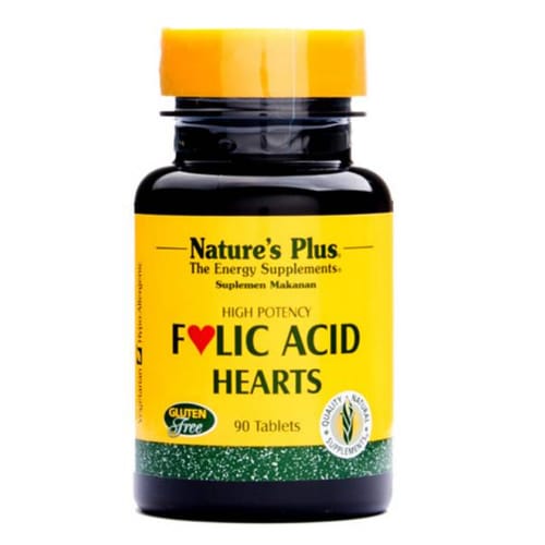 Nature's Plus Folic Acid Hearts merupakan multivitamin yang mengandung asam folat, vitamin B6, serta vitamin B12. Vitamin-vitamin tersebut memiliki banyak manfaat, termasuk mencegah penyakit jantung, menjaga kesehatan pembuluh darah, dan meningkatkan kesehatan otak.