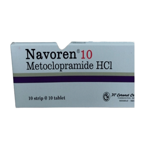 Navoren 10 mg 10 Tablet bermanfaat untuk meredakan mual dan muntah akibat penyakit asam lambung, prosedur bedah, kemoterapi, atau radioterapi.