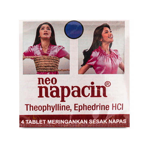 Neo Napacin Tablet merupakan obat yang berkhasiat membantu meringankan sesak napas serta meringankan dan mengatasi asma bronkial. Neo Napacin mengandung kombinasi dua bronkodilator yaitu Theophyllin dan Ephedrin HCL. Theophyllin merupakan turunan metilxanti yang mempunyai efek antara lain merangsang susunan saraf pusat dan melemaskan otot polos, terutama bronkus. Ephedrin HCL bekerja mempengaruhi sistem saraf adrenergik secara langsung dan tidak langsung. Ephedrin HCL dan Theophyllin keduanya merupakan bronkodilator, yang bekerja meringankan sesak napas.