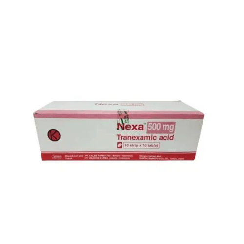 Nexa 500 Mg 10 Tablet bermanfaat untuk menghentikan pendarahan pada beberapa kondisi, seperti mimisan yang tidak kunjung berhenti, menorrhagia, cedera, perdarahan pasca prosedur cabut gigi, atau perdarahan pascaoperasi.