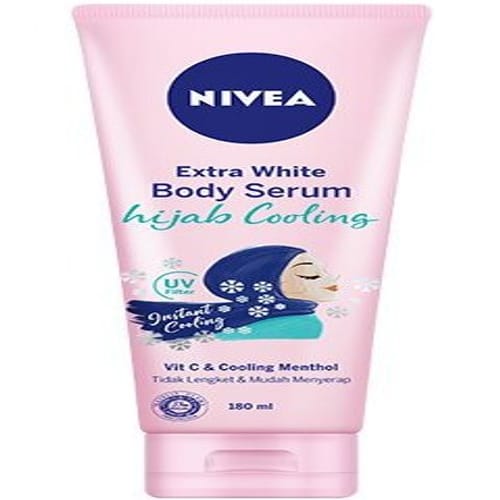 Nivea Extra White Body Serum Hijab Cooling 180 ml adalah serum tubuh yang dirancang khusus untuk wanita berhijab, memberikan efek mencerahkan dan sensasi dingin yang menyegarkan. Berikut ini adalah manfaat, cara menggunakan, dan hal-hal yang perlu diperhatikan dari penggunaan Nivea Extra White Body Serum Hijab Cooling 180 ml.
