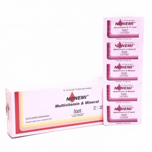 Fe fumarate 91,27 mg, asam folat 0,8 mg, vitamin B12 15 mcg, kalsium karbonat 200mg, vitamin D3 400 IU, dan vitamin C 75 mg