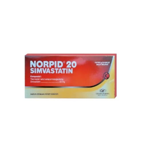 Norpid Tablet mengandung simvastatin yang bekerja dengan cara menghambat kerja enzim pembentuk kolesterol. Dengan begitu, jumlah kolesterol yang diproduksi tubuh akan berkurang dan risiko terjadinya komplikasi akibat kolesterol tinggi, seperti stroke dan serangan jantung, dapat menurun.