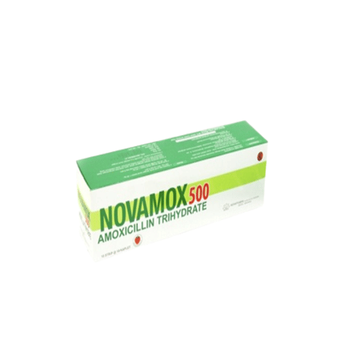 Novamox 10 Tablet mengandung zat aktif amoxicillin yang merupakan antibiotik golongan penicillin, mempunyai spektrum sedang, aktif terhadap bakteri gram negatif maupun gram positif. Novamox 10 Tablet digunakan untuk mengobati infeksi saluran pernafasan bagian atas dan bawah, infeksi saluran kemih, infeksi saluran pencernaan, serta infeksi kulit dan jaringan lunak.