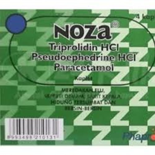 Noza Tablet adalah obat yang mengandung Triprolidine HCl, Pseudoephedrine HCl dan Paracetamol. Noza digunakan untuk meredakan gejala-gejala flu seperti demam, sakit kepala, bersin-bersin, hidung tersumbat. Noza Tablet dapat menyebabkan rasa kantuk