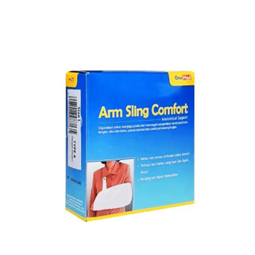 One Med Arm Sling Comfort Size L digunakan untuk menjaga posisi dan mencegah pergerakan sendi pada luka, siku dan bahu pasca operasi atau pemasangan gips