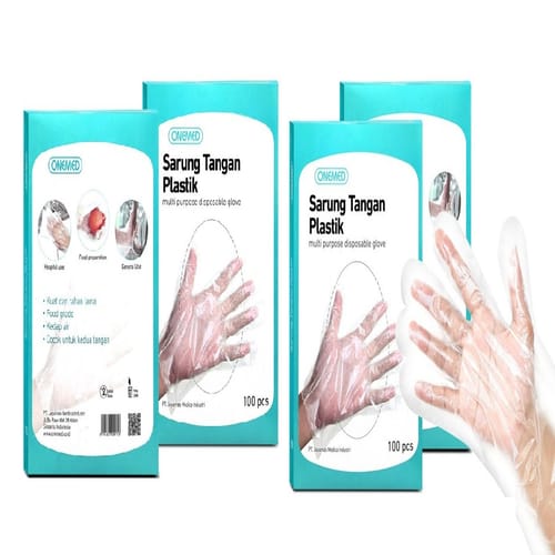 One Med Sarung Tangan Plastik merupakan sarung tangan plastik yang terbuat dari bahan berkualitas Cost Poly Ethylen embosed 1,6gr yang lebih kuat dan tebal. One Med Sarung Tangan Plastik dapat menjaga tangan Anda tetap bersih disaat melalakukan berbagai aktifitas sehari-hari, seperti pada saat berkebun, mengecat , medis, salon dan lain-lain. Selain itu, One Med Sarung Tangan Plastik ini juga terbuat dari bahan yang aman untuk makanan dan sudah memenuhi standart Foodgrade, sehingga dapat digunakan untuk aktifitas memasak. Tidak hanya itu saja, sarung tangan ini juga nyaman ketika dipakai sebagai pelindung diri untuk menghindari kontak fisik saat berada di tempat umum, seperti didalam transportasi, di taman, dan diberbagai tempat lainnya.